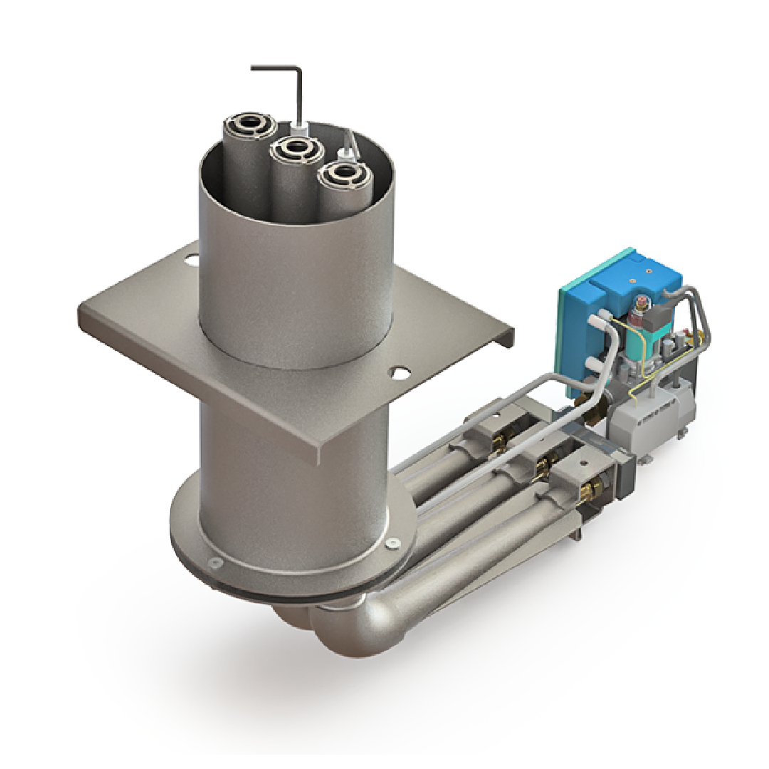 Para hornos con un diámetro de 60 a 90 cm, 90 a 120c cms y 120 cms a 140 cms. Modelo básico con dimensiones extremadamente pequeñas en la versión horizontal o vertical y con un orificio de entrada al horno de diámetro 9 cm, 11 cms y 15 cms. Equipado con un solo venturi con potencia térmica de 6.5 a 14 Kw, 10.5 a 22 Kw y 15.5 a 34 Kw.