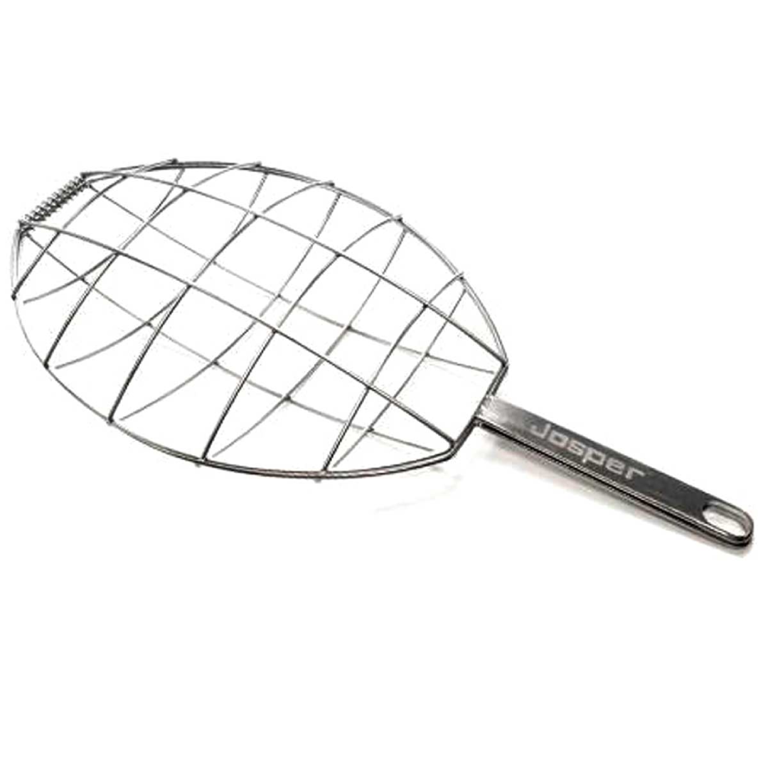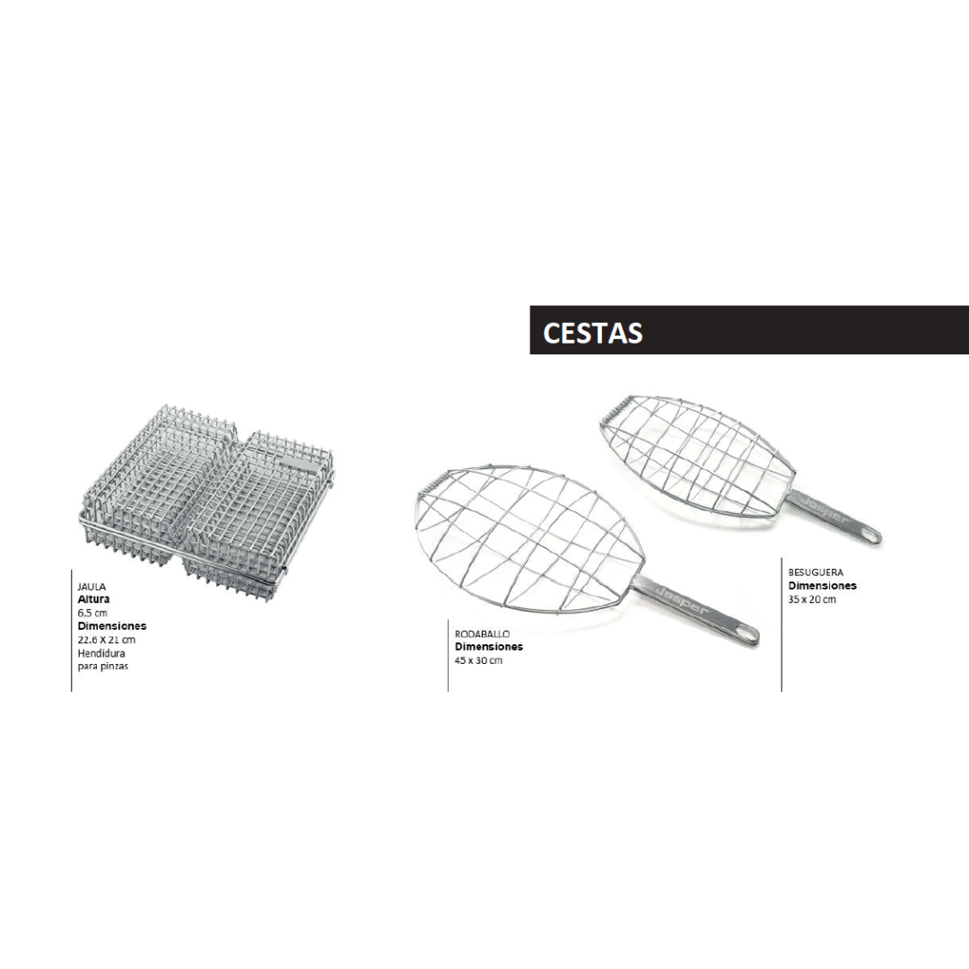 Parrilla rodaballera diseñada para asar pescados enteros. Permite manipular y voltear el pescado sin que se desintegre o rompa.