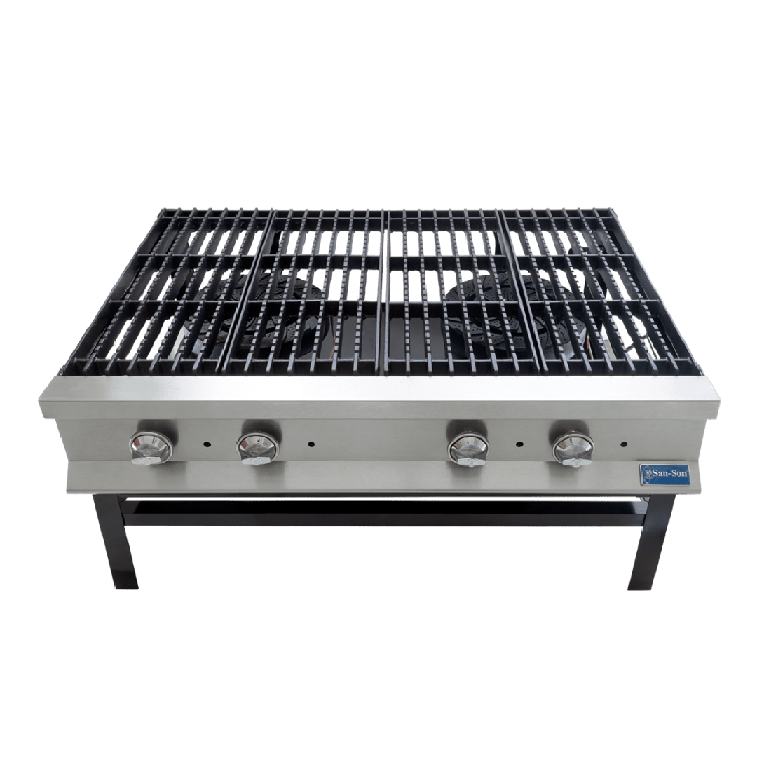 - 2 secciones de quemadores duales concéntricos fabricados en hierro fundido con 200,000 BTU/hr.