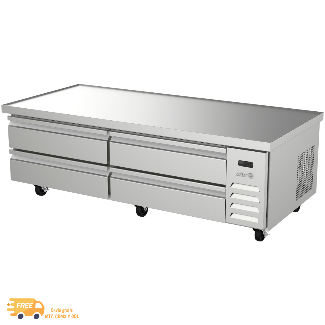 “桌面烹饪”设备底座与冷藏厨师底座盖顶部之间所需的最小空间必须为 4 英寸。