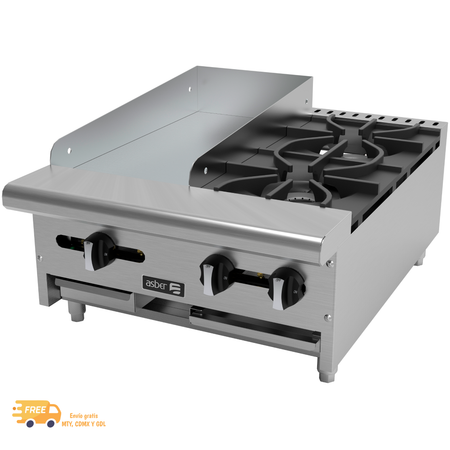 ASBER AEM-G12-B2-24 燃气烧烤炉 2 个开放式燃烧器和 12 英寸煎锅