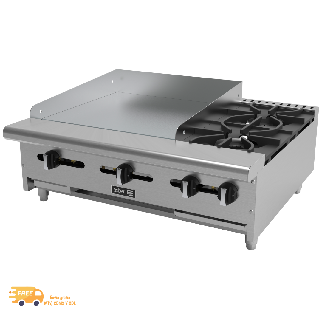 ASBER AEM-G24-B2-36-H 燃气烧烤炉 2 个开放式燃烧器和 24 英寸煎锅