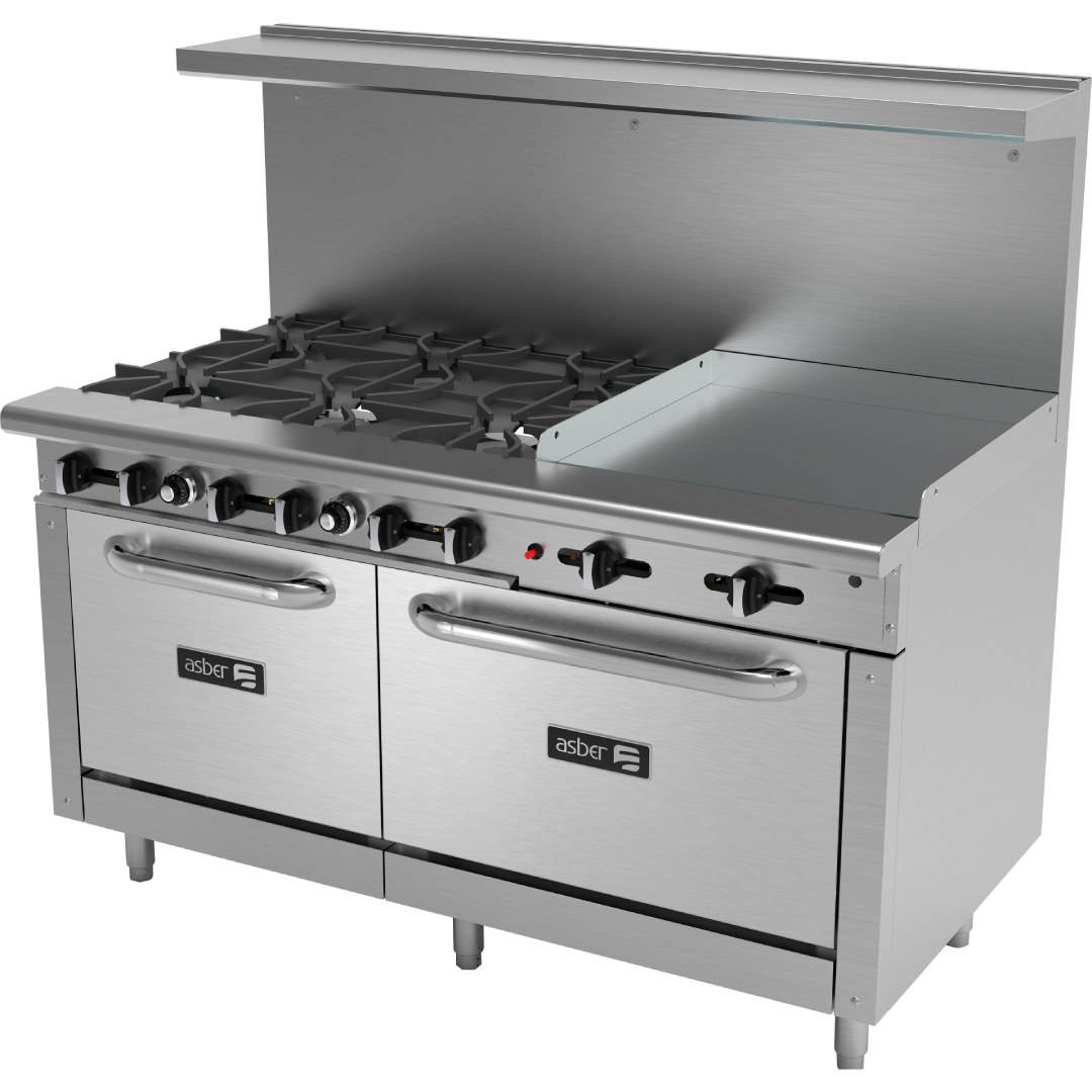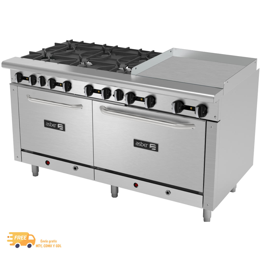 ASBER AEMR-2-G24-B6-60-H 多炉 6 个燃烧器,带 24" 盘子和 2 个烤箱 24" 和 36"