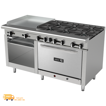 ASBER AEMR-G24-B6-60-H 多炉 6 个燃烧器,带 24 英寸烤盘 + 烤盘和 36 英寸烤箱