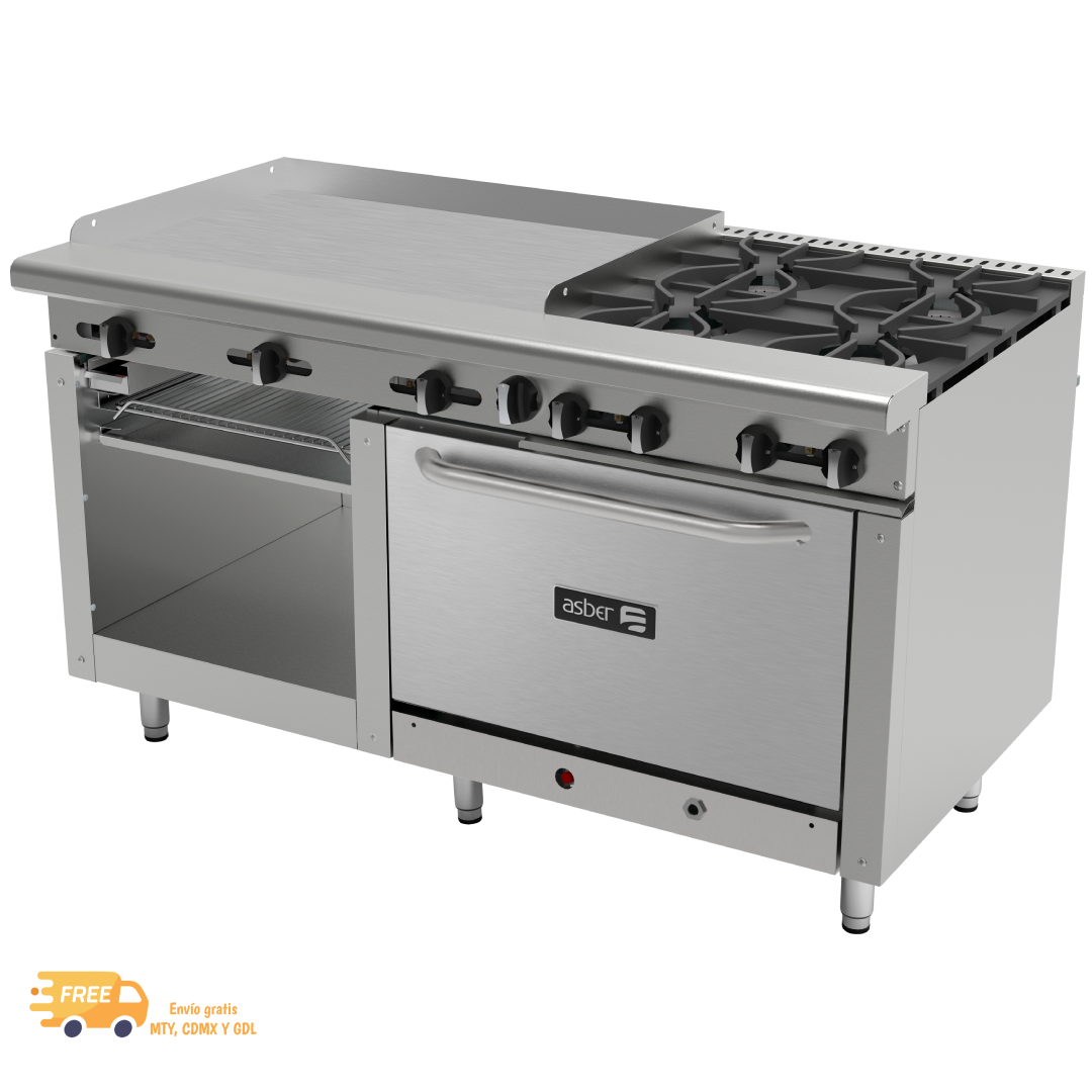 ASBER AEMR-G36-B4-60-H 多炉 4 个燃烧器,带 36 英寸烤盘 + 烤盘和 36 英寸烤箱