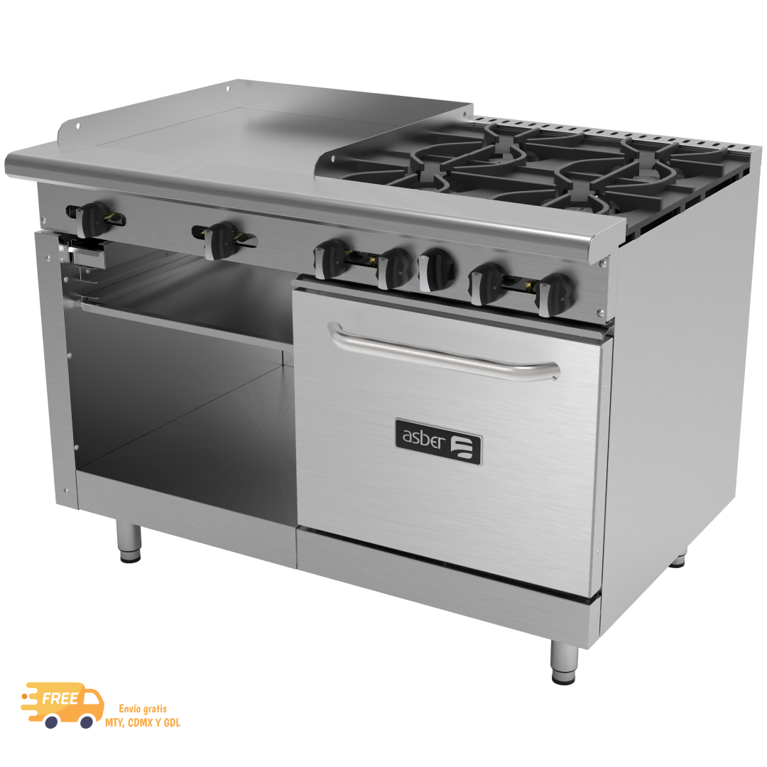 ASBER AMR-48 炉子 4 个开放式燃烧器 + 24 英寸接地板 + 烤箱 + 钢烤架