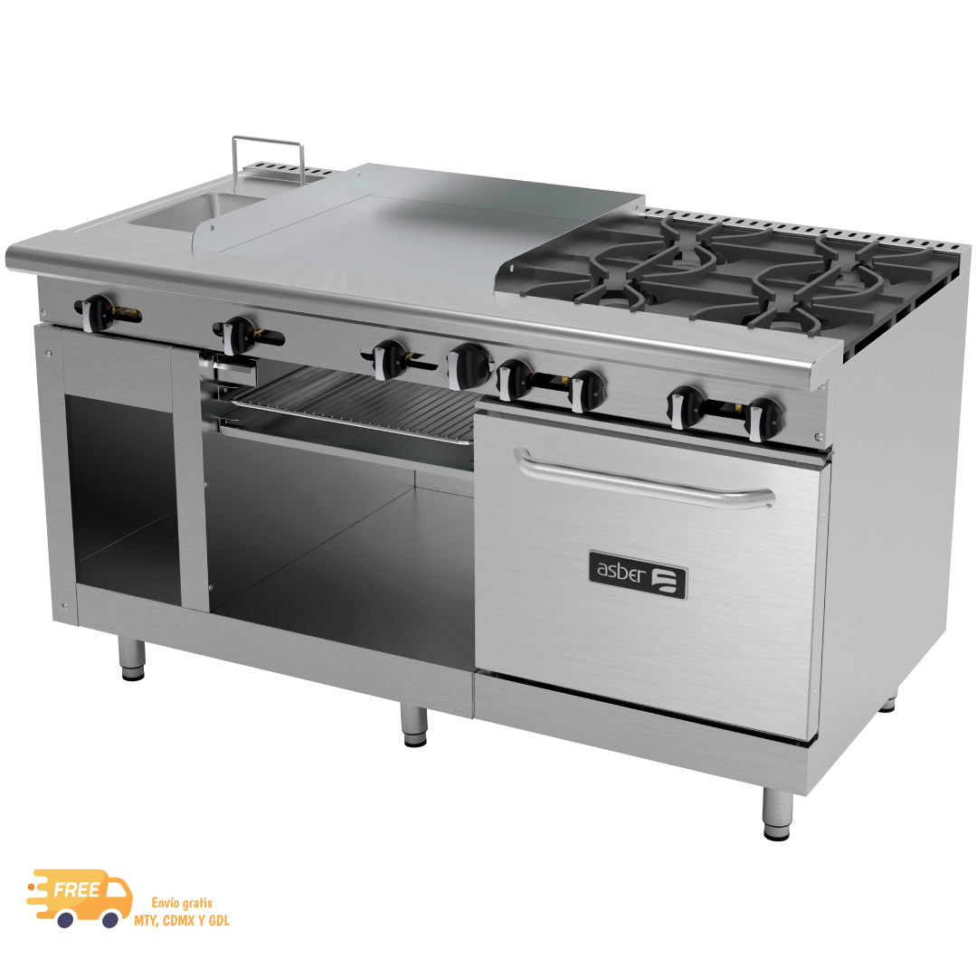 ASBER AMR-60 多功能炉 4 个开放式燃烧器 + 24 英寸烤盘 + 烤箱 + 烤肉器 + 油炸锅