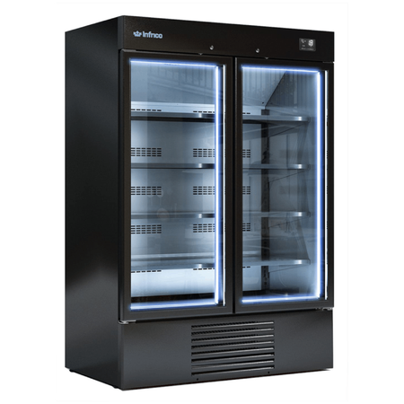 ¡Mantén tus productos frescos y exhibidos en este refrigerador exhibidor de Infrico! Con una capacidad de 1310 litros y dos puertas, es ideal para bares, tiendas de abarrotes y supermercados. Organiza tus productos con facilidad y atrae a tus clientes con una presentación impecable. ¡Haz crecer tu negocio con este refrigerador de alta calidad!