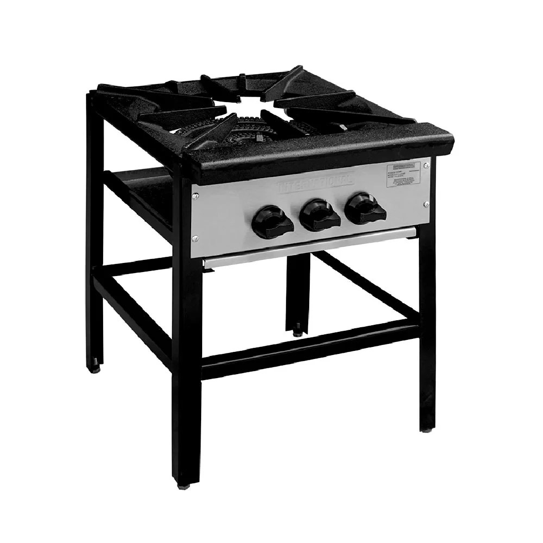 Los fogones compactos marca INTERNATIONAL están fabricados con estructura soldada, fabricada en lámina negra cal. 11, esmaltado con pintura electrostática. Cuenta con conexión de 1″ NPT para Gas L.P.