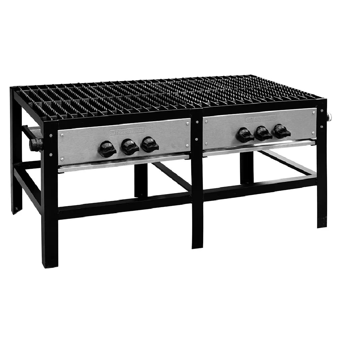 Los fogones de la marca INTERNATIONAL están fabricados en ángulo de 2” y 1 1/2” con acabado esmaltado. Cuenta con ajuste de nivel para un correcto apoyo y con triple quemador concéntrico para 110,000 BTU/hora.