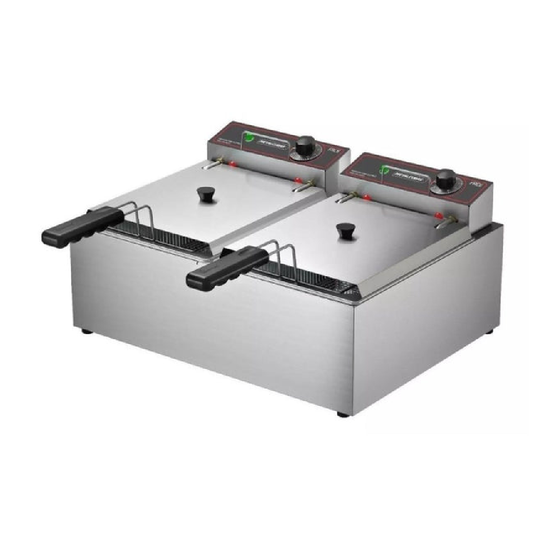 由不锈钢制成,配有 150 毫米深的插入件、不锈钢盖、可拆卸阻力板,方便清洁、不锈钢阻力、温度调节器恒温器,每个篮子带有独立的操作指示灯。