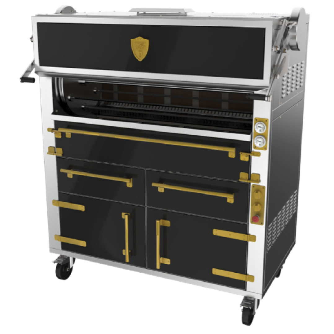 Rotisserie 技术是一种古老和中世纪的剑烤技术,非常适合大块肉类、家禽等。这是最原始的技术,产品和余烬(热源)之间没有屏障、平底锅、砂锅或烤架。