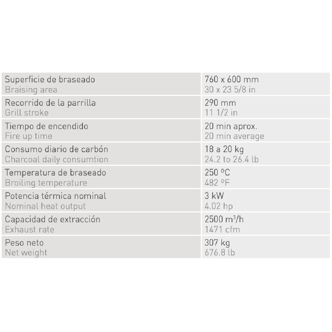 - Josper Basque Grill 的自然、非强制热对流流动,限制了热传递,从而降低了 Basque Grill 的外部温度,从而提高了其可用性。