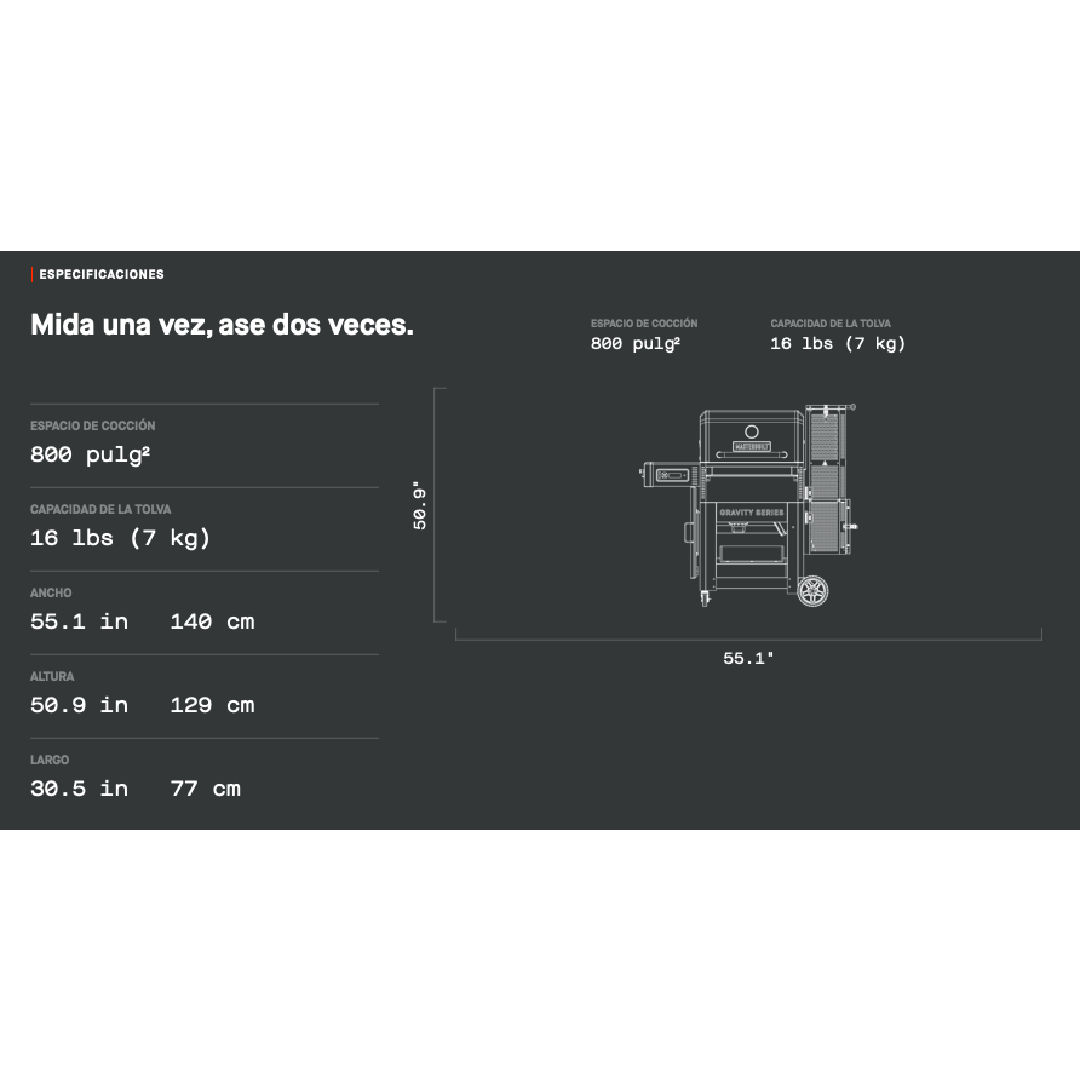 使用 Masterbuilt Gravity Series 800 数字木炭烧烤炉 + 吸烟器,您可以吸烟、烧烤、煎炸、烘烤等。在数字控制面板或智能设备和 DigitalFan 上设置温度,以保持所需的烹饪温度。