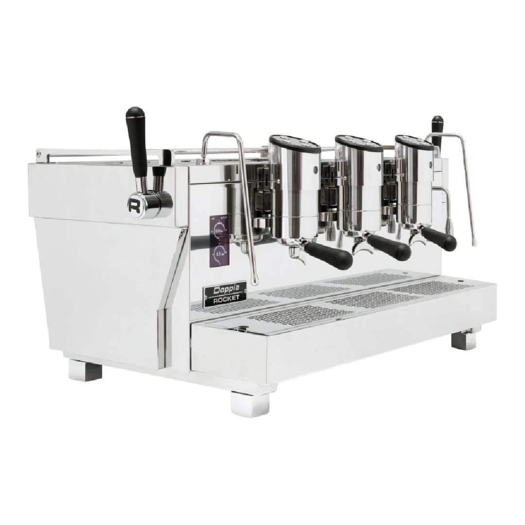 Doppia comparte el diseño que diferencia a la gama Rocket, máquinas con líneas rectas y materiales de calidad como el acero AISI 304 de su carrocería cromada.