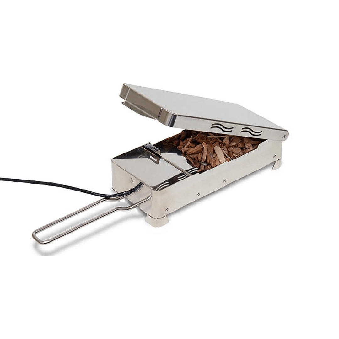 - Caja para ahumar con fuente de alimentación, soporte de la fuente de alimentación y cables de conexión.