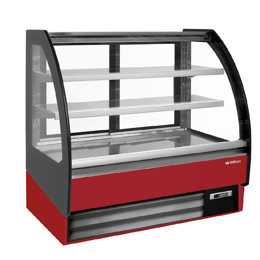 VBR18IHT INFRICO Vitrina Expositora Pastelera Caliente de Cristal Curvo 73"